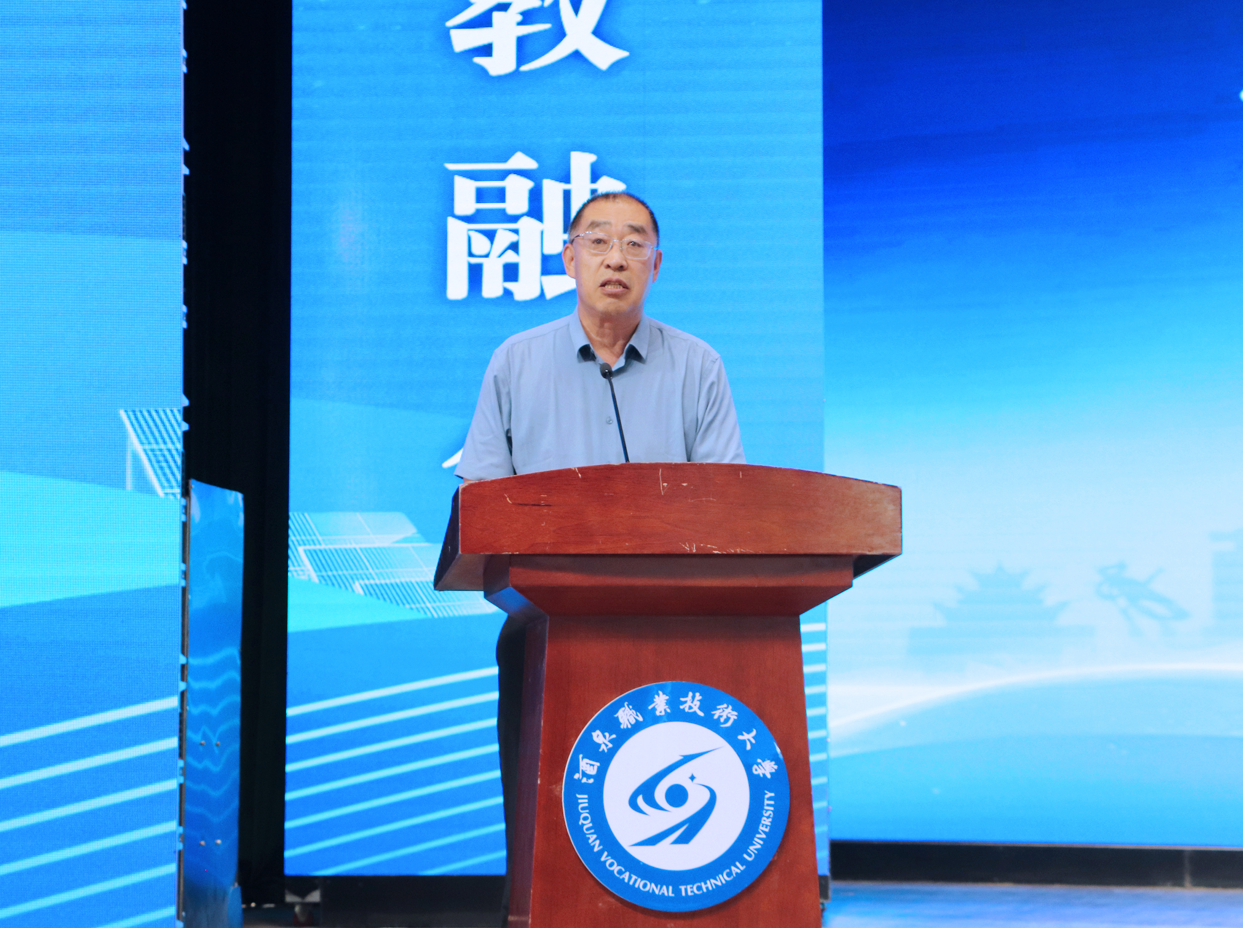 许军讲话指出,2025年是“十四五”规划收官之年和学校职业本科建设肇始之年,作为酒泉市唯一的职业本科院校,要以专业之“能”回应产业之“需”,以创新之“为”成就区域之“兴”。许军对全校师生提出三点期望:一是要立心,做“顶天立地”的科研追梦人。让科研扎根社会、服务企业,用数据说话,让企业点头,以创新为帆,以担当为桨,踏浪前行;二是要聚力,建“共生共荣”的校企生态圈。全校师生要凝聚价值共识,深化机制创新,依托“两翼”激活人才共育的创新源头,让创新活力竞相迸发;三是要铸魂,育“敢闯会创”的时代生力军。要求广大师生要敢于挑战未知,勇于突破边界,善于创造价值,以智慧和汗水在酒职大高质量建设的时代大潮中勇立潮头、建功立业。最后,许军宣布本届胡杨・科技创新活动月闭幕。