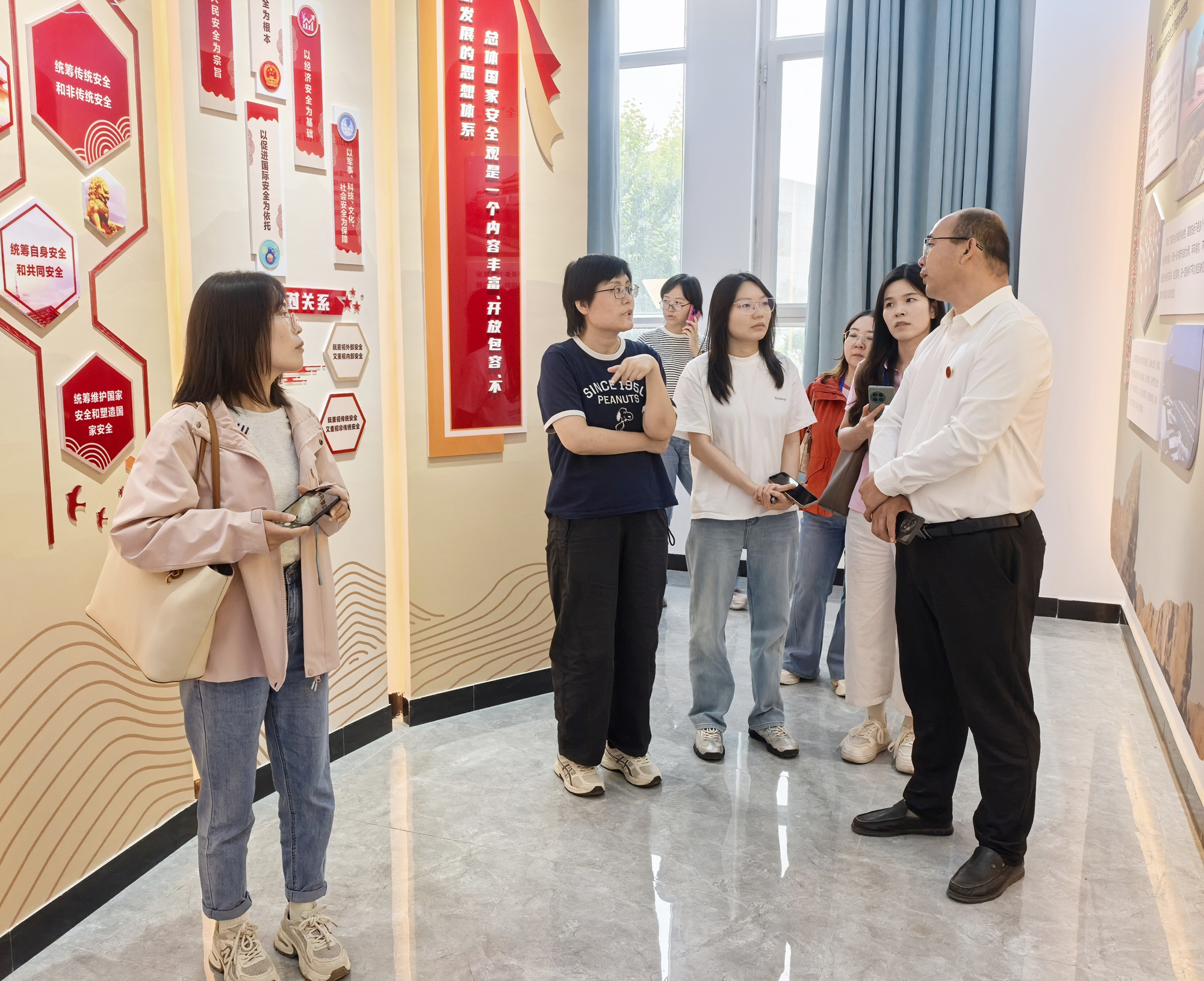 采访团一行实地考察了数字安全科普素养基地、大数据安全靶场及国家安全教育基地等场所,详细了解了学校网络安全人才培养模式、课程体系建设和科研技术创新等方面的特色举措与实践成果。在大数据安全靶场,观看了仿真攻击防御演练系统,了解了“攻防实训平台”运行机制。深入国家安全教育基地,通过图文展板、互动投影等形式,直观感受到学校将国家安全教育融入人才培养全链条的创新实践。