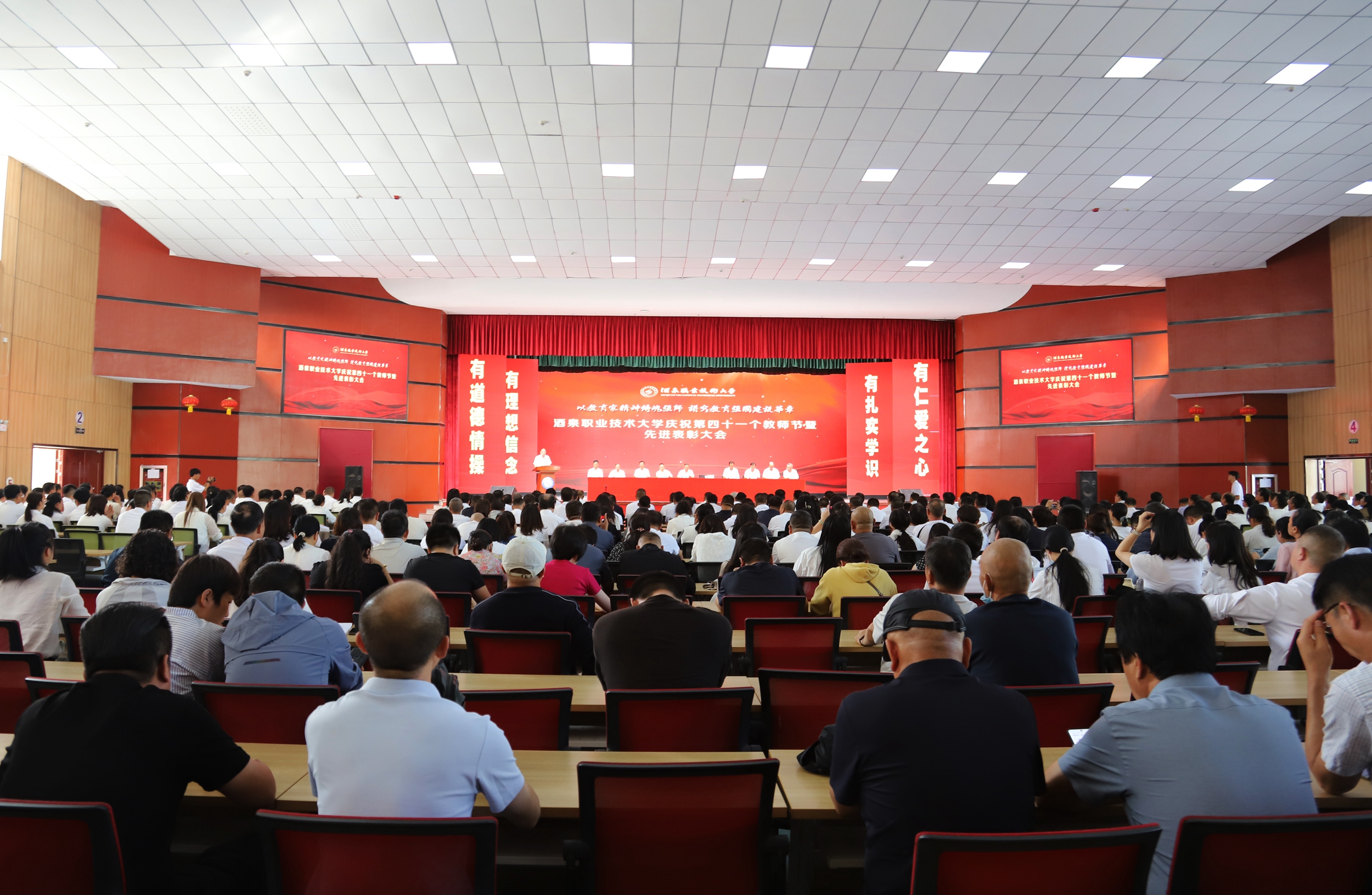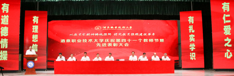 金秋送爽,硕果盈枝。2025年9月9日,学校召开庆祝第41个教师节暨表彰大会,全体教师以饱满的热情和昂扬的精神风貌欢聚一堂,凝聚师者力量,赋能职业教育。德国汉斯赛德尔基金会甘肃代表处首席代表施泰德先生,金风科技金风教育培训中心产品研发总监陈斌先生受邀出席大会。学校党委书记易志军,党委副书记、校长许军及其他校党委班子成员出席大会。全体教职工参加大会。