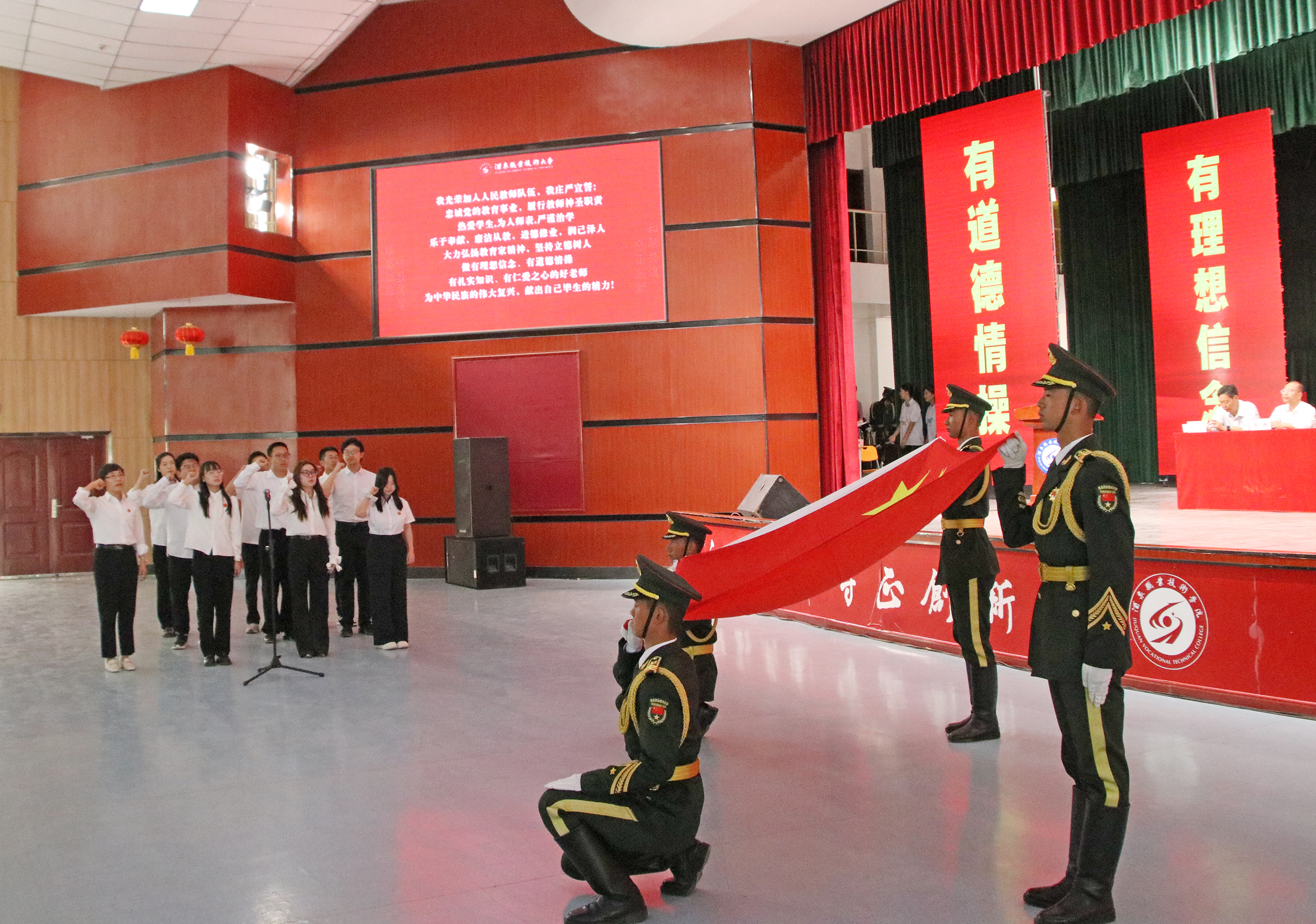新入职教师进行宣誓,生物工程学院杨丽老师,旅游与烹饪学院王凯缘同学分别作了发言。
