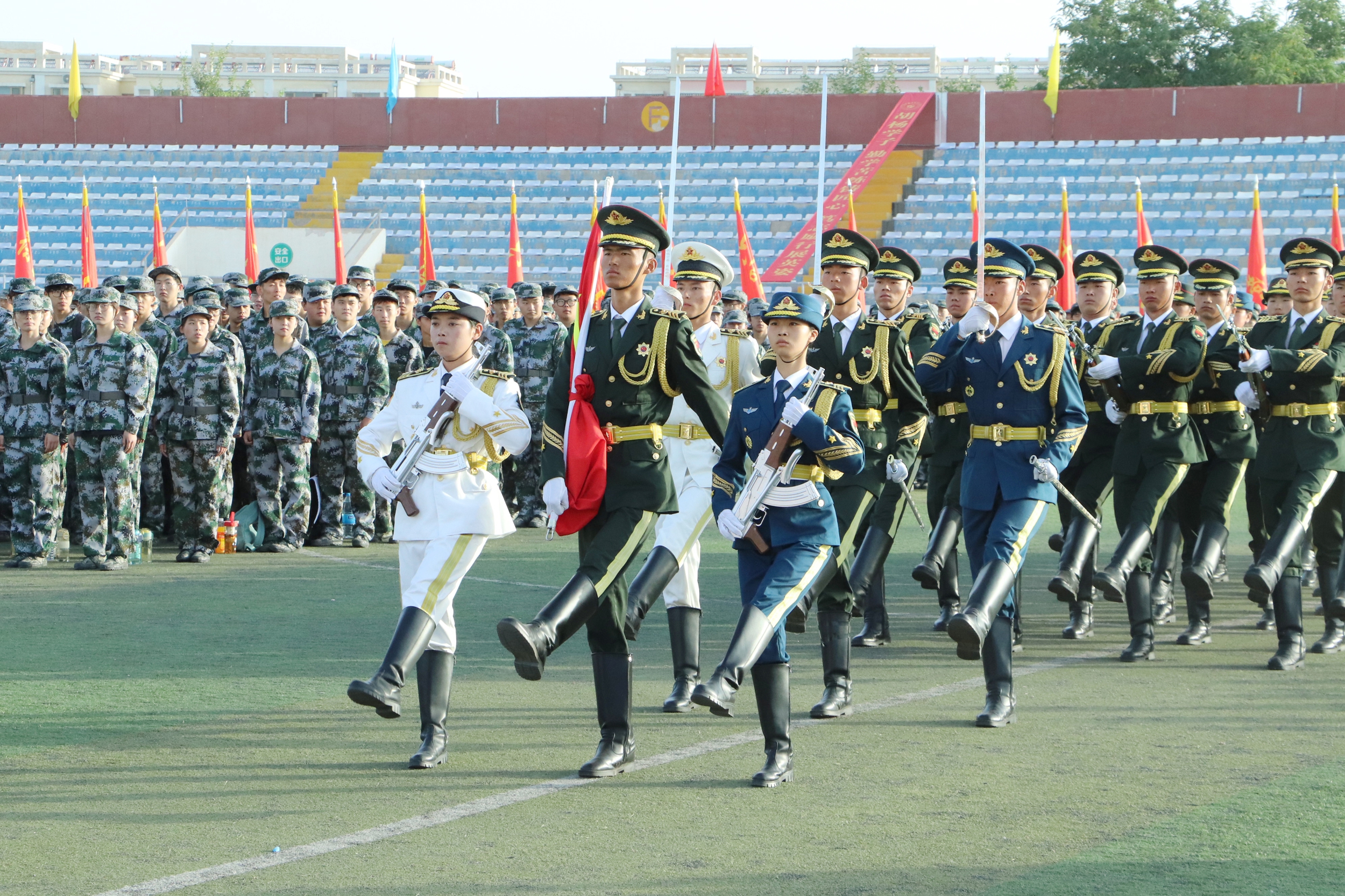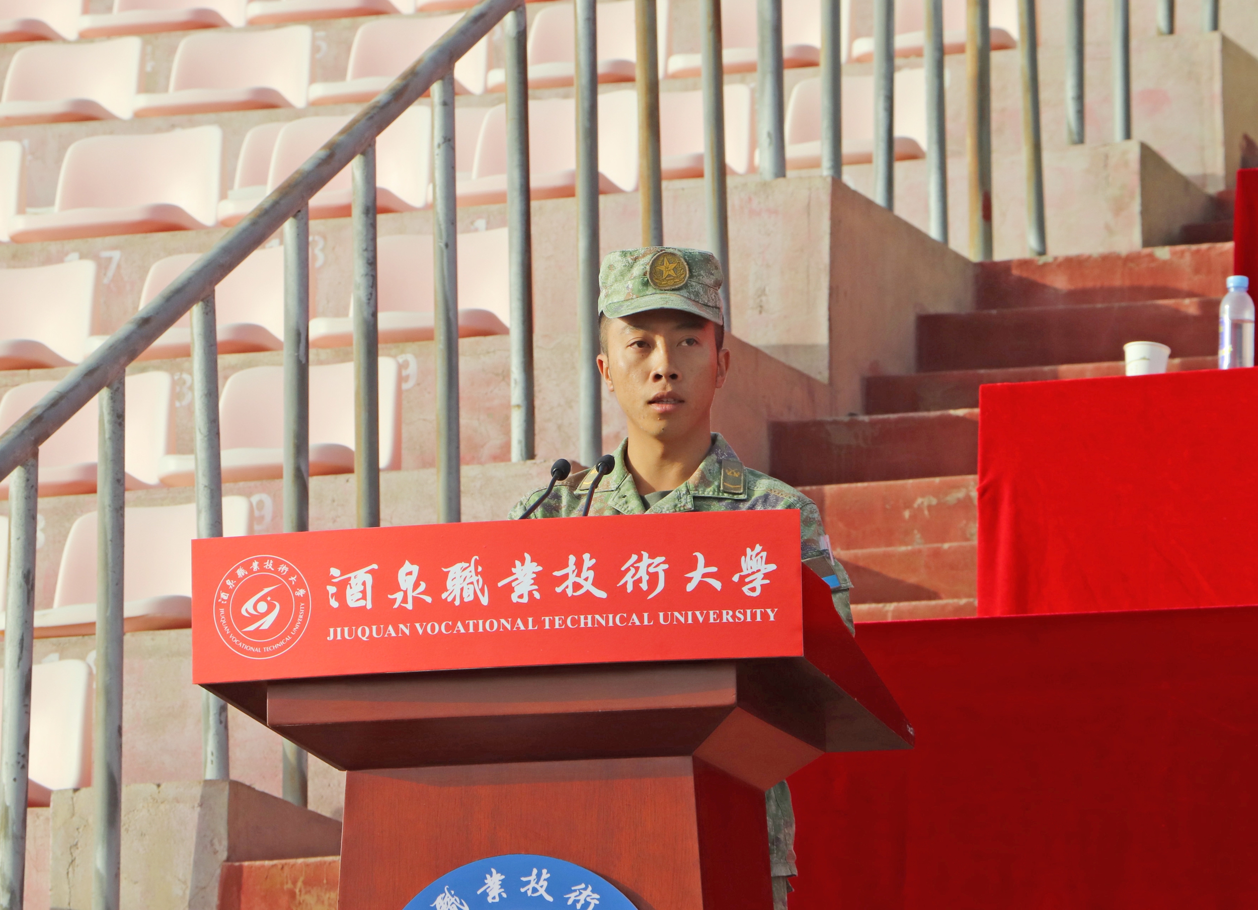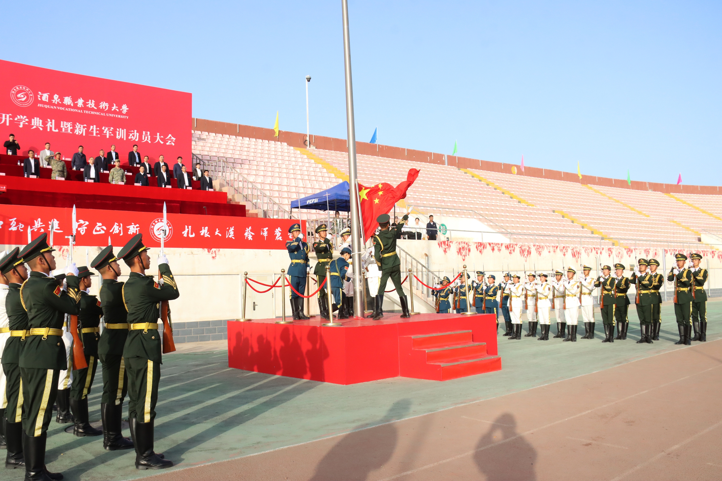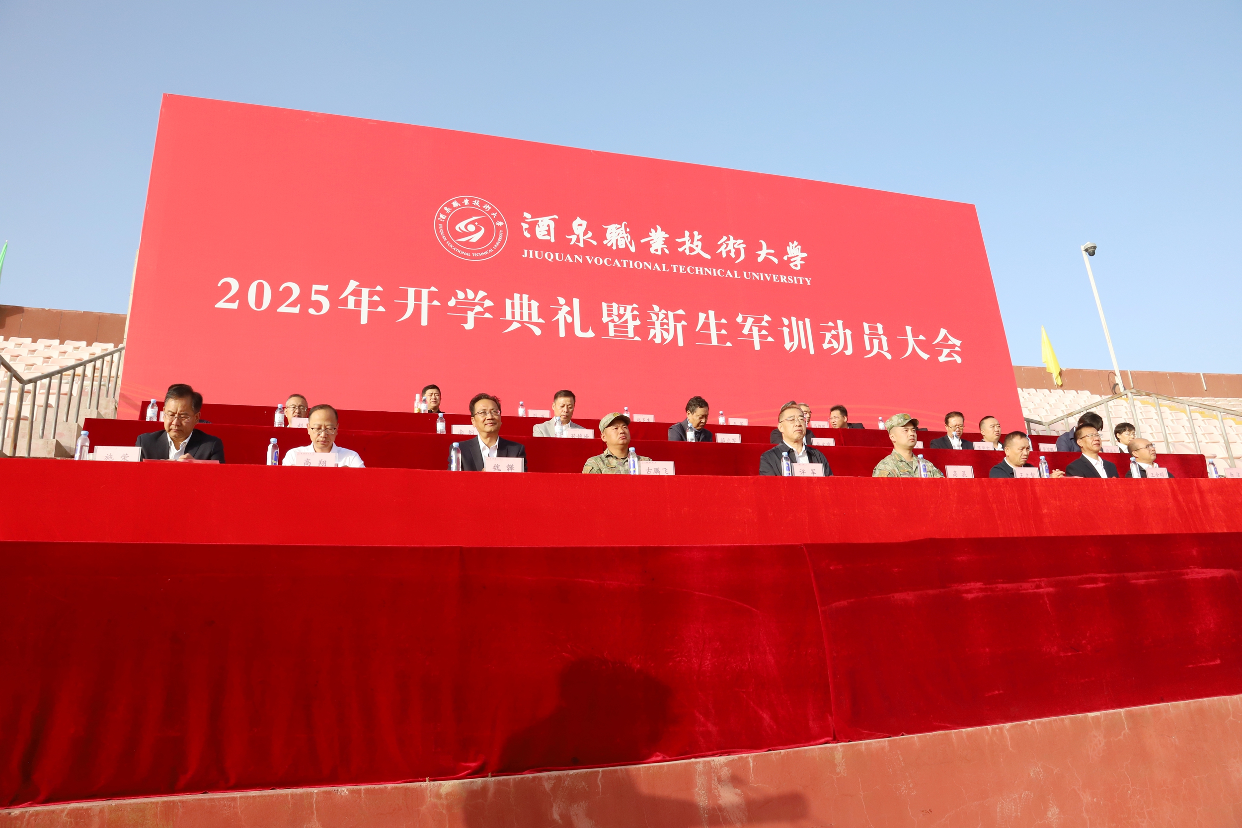 酒泉职业技术大学2025年开学典礼暨新生军训动员大会圆满结束,2025级新生正式开训,将进行为期15天的军训。