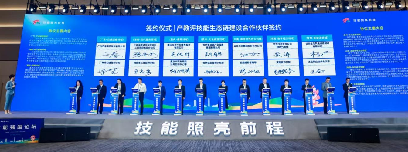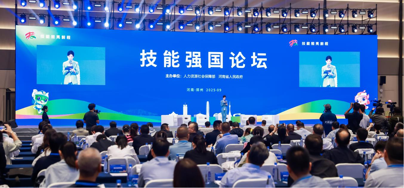 2025年9月20日,第二届技能强国论坛在郑州举行。学校党委委员、副校长王金明,金风科技股份有限公司金风创培副总经理杨华参加产教评技能生态链签约仪式。