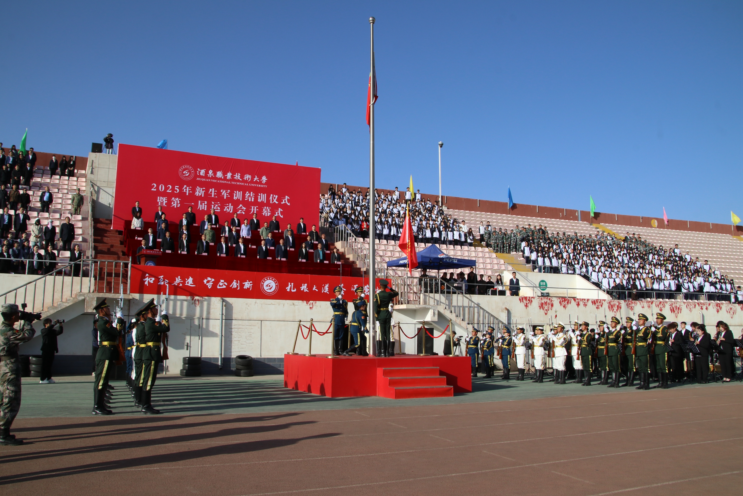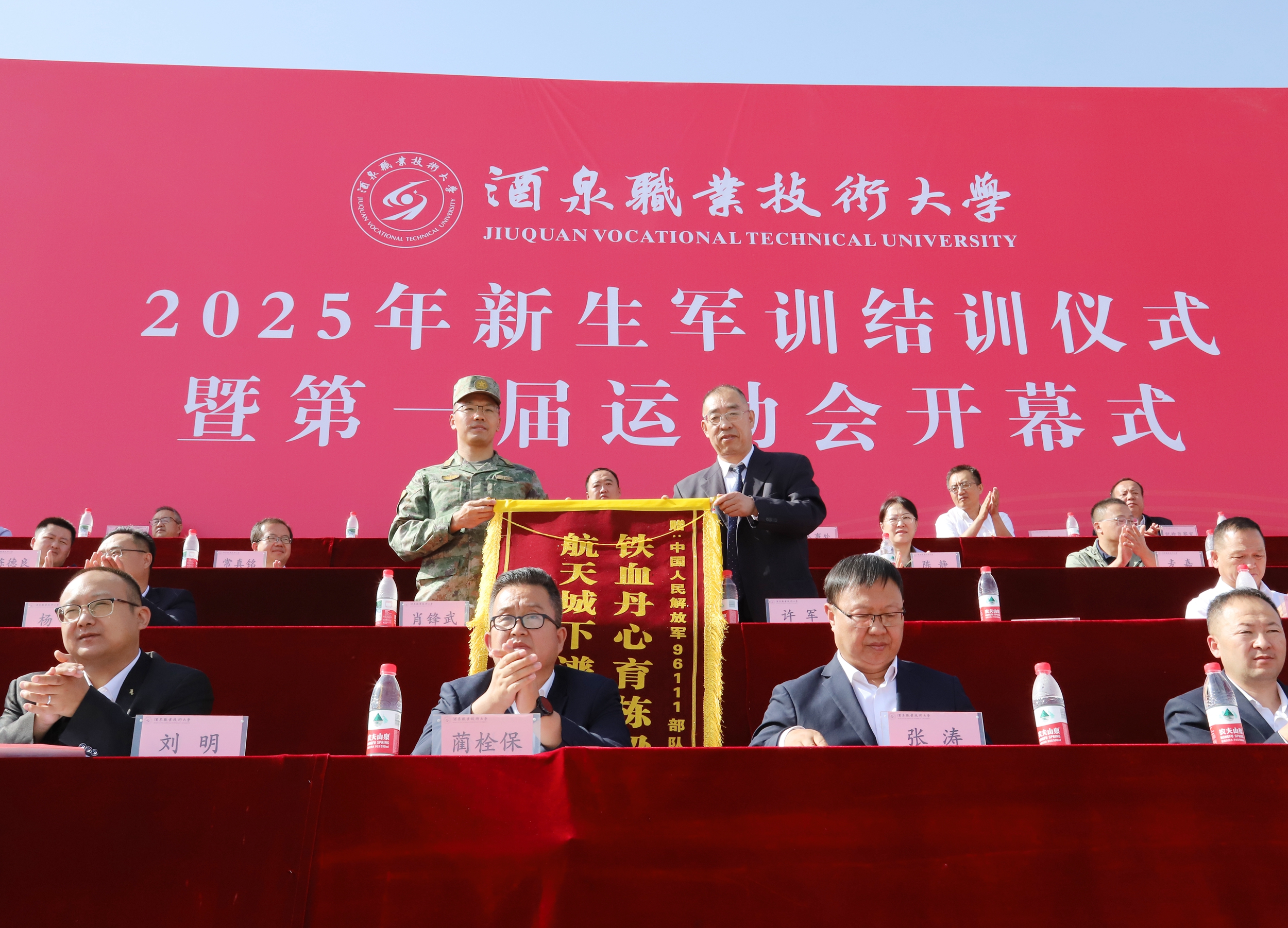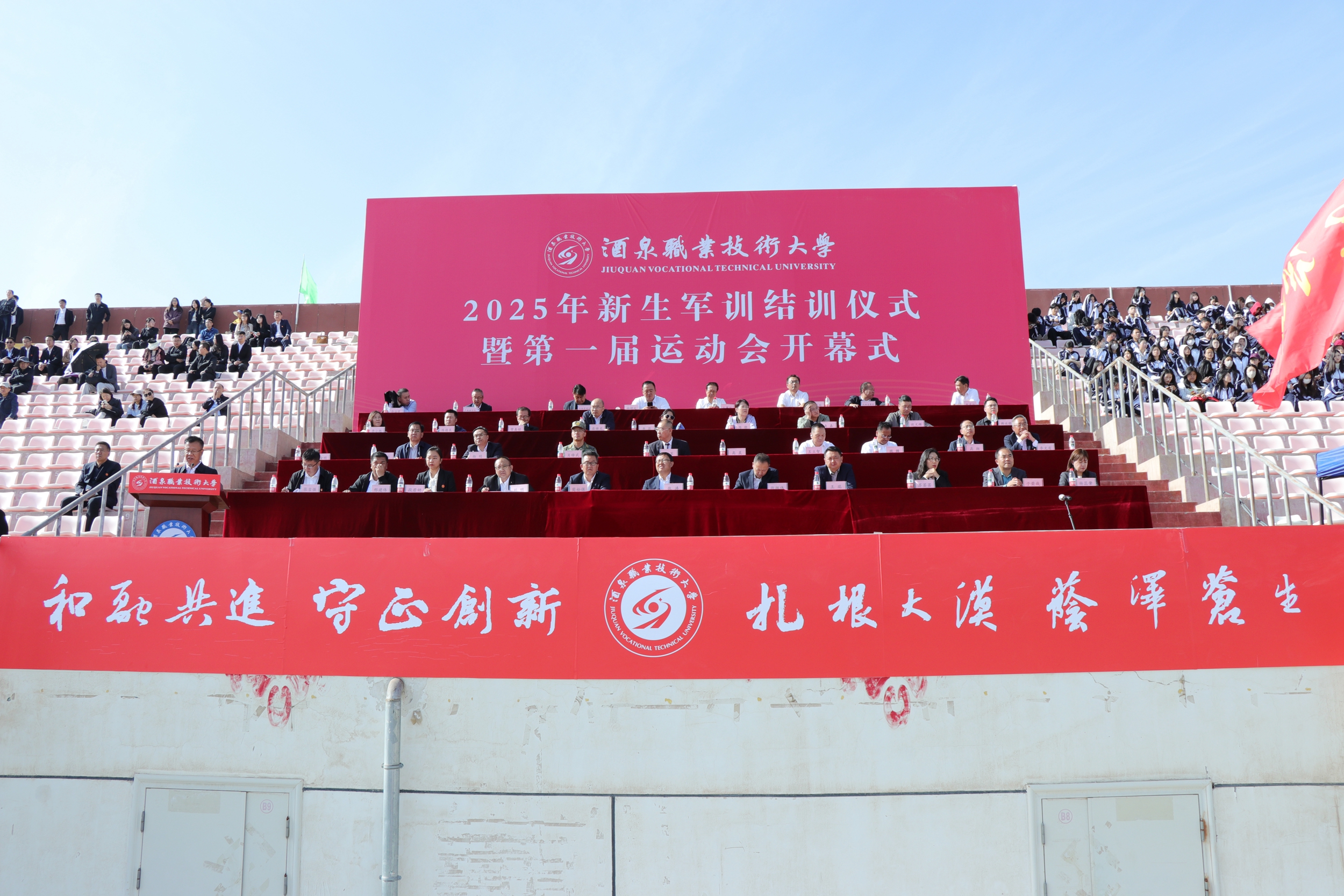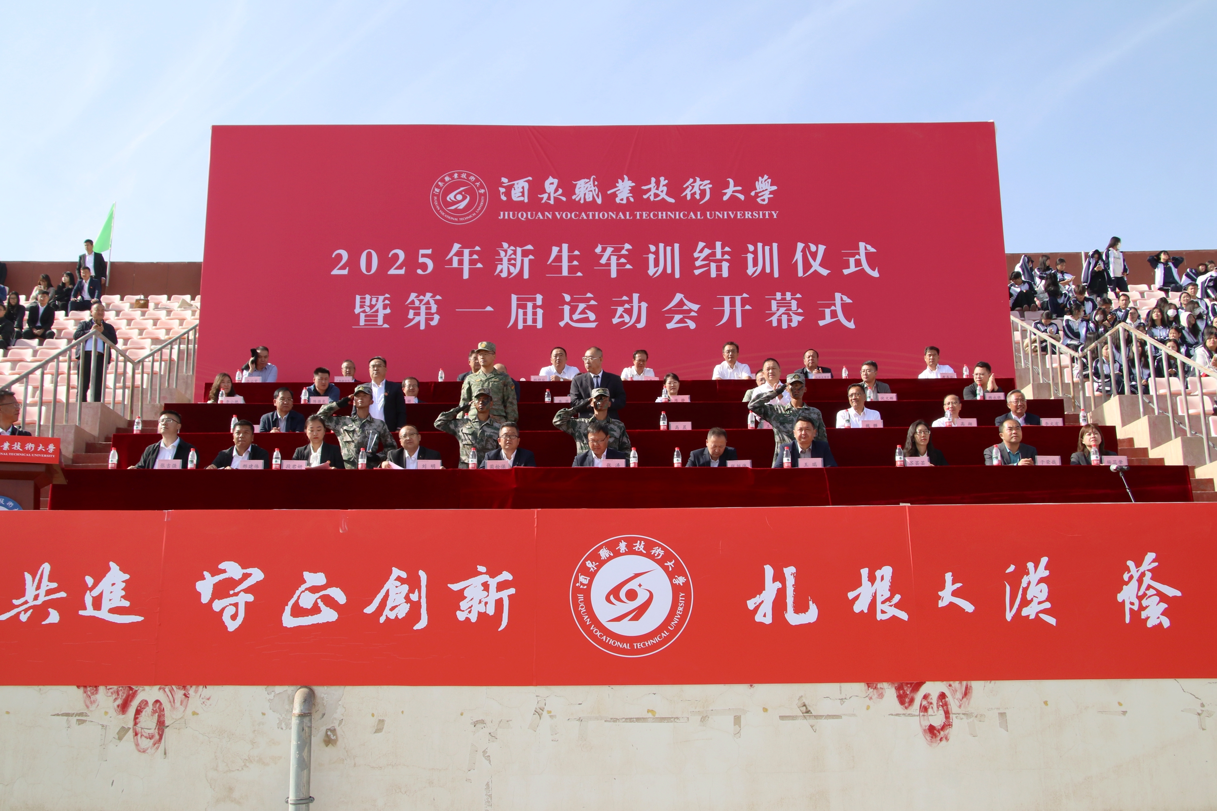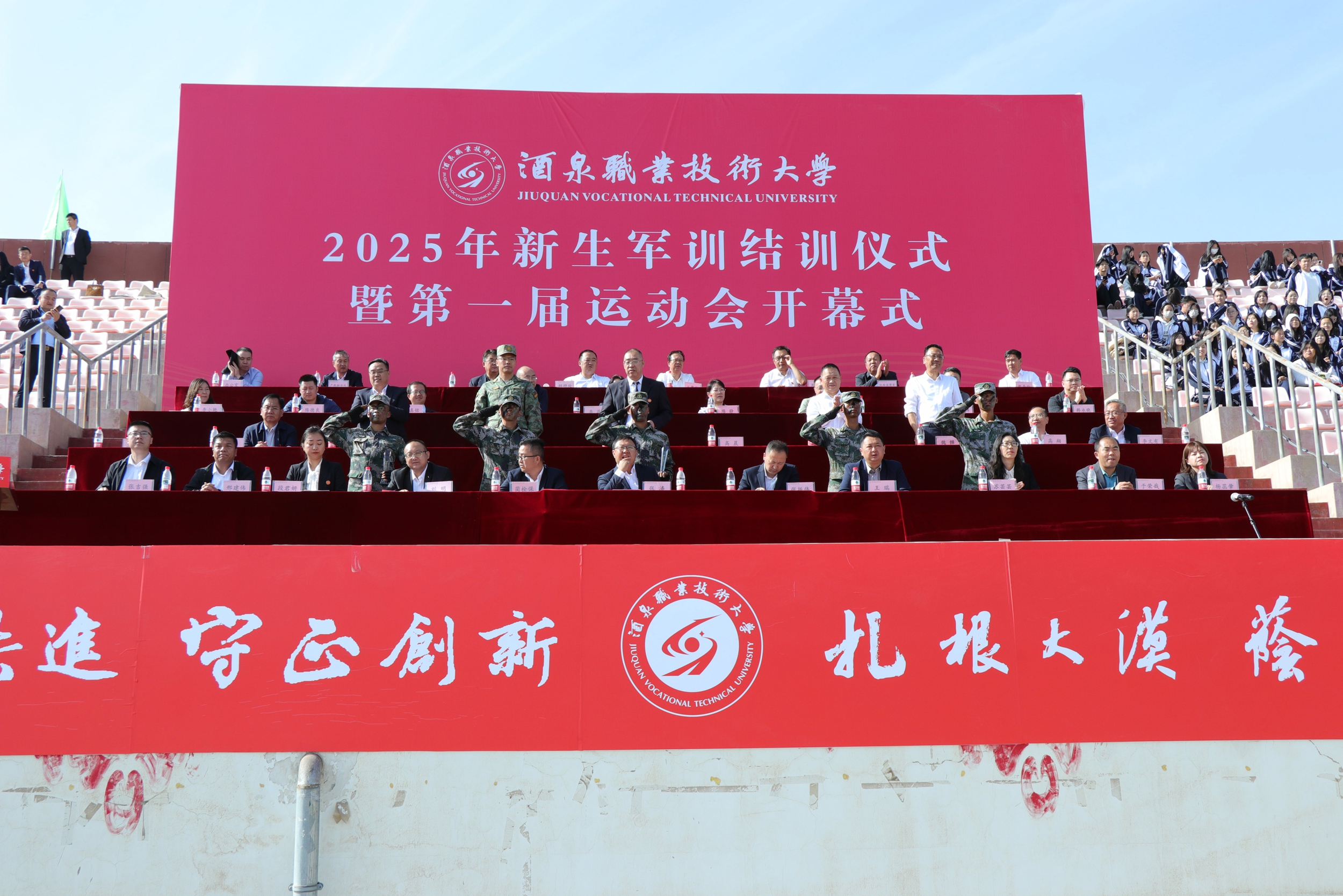 秋阳铺洒操场,迷彩装点青春。2025年9月27日,酒泉职业技术大学举办2025年新生军训结训仪式暨第一届运动会开幕式,4800余名新生以昂扬姿态接受检阅,为为期15天的军训画上圆满句号。中国人民解放军96111部队肖锋武,中国人民解放军94005部队高晨,酒泉职业技术大学党委副书记、校长许军及校党委班子成员出席开幕式。党委委员、副校长王金明主持活动。