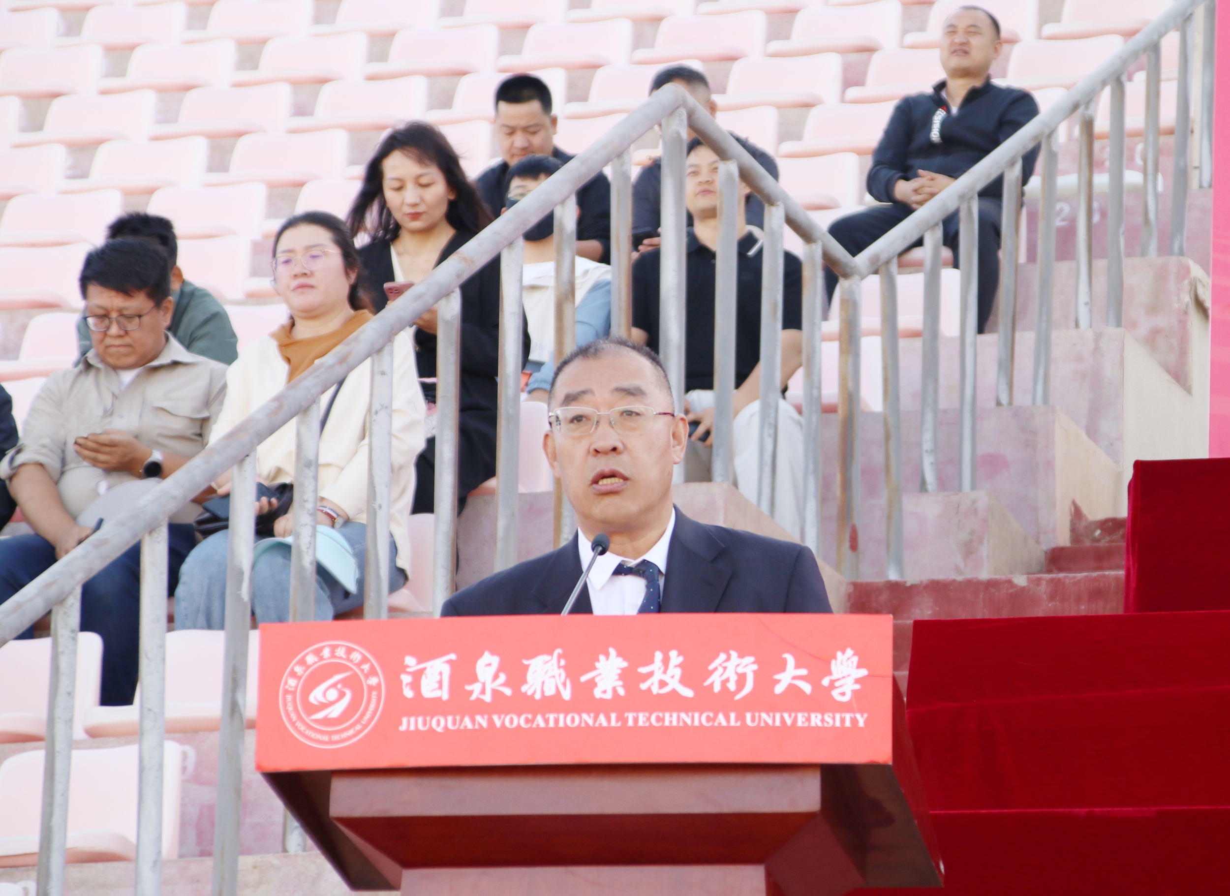 秋日赛场见证拼搏,奋进号角奏响华章。2025年9月29日,酒泉职业技术大学第一届运动会圆满闭幕。学校党委副书记、校长许军,党委委员、纪委书记、监察专员魏韡出席闭幕式。各学院师生代表、运动员、裁判员及志愿者齐聚现场,共同为这一盛会画上圆满句号。党委委员、副校长王金明主持活动。