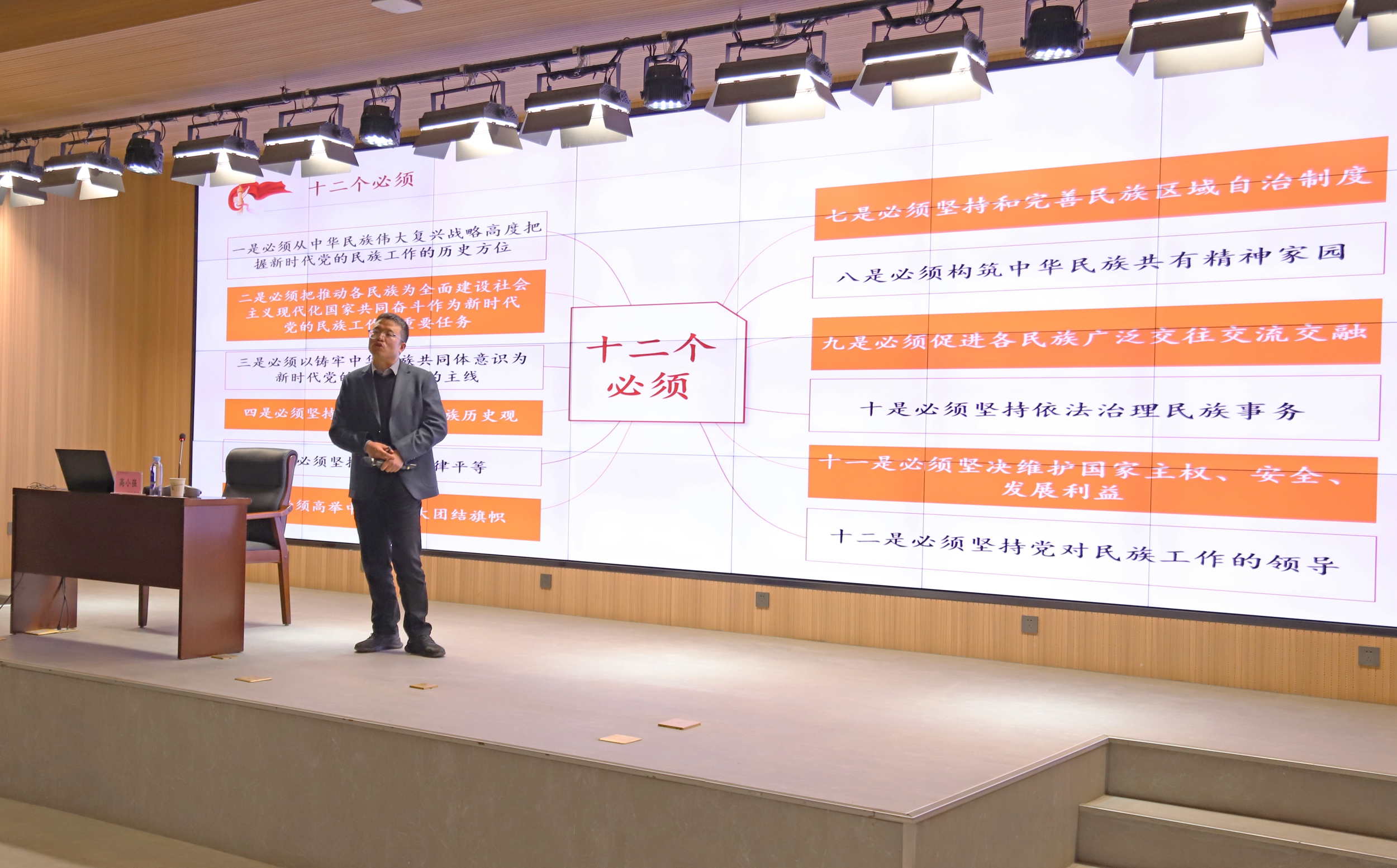 宣讲围绕民族工作、宗教工作、统战工作等三方面,对我国民族宗教统战理论政策进行了详细解读。整场宣讲报告政治站位高、解读深刻、内涵丰富、讲解生动,既有对理论知识的科学概括,又有对工作实践的理性思考,既研究解答了工作难点,又明确了工作重点,对于今后深入、有效地开展学校宗教工作具有很强的指导性、针对性和启发性。