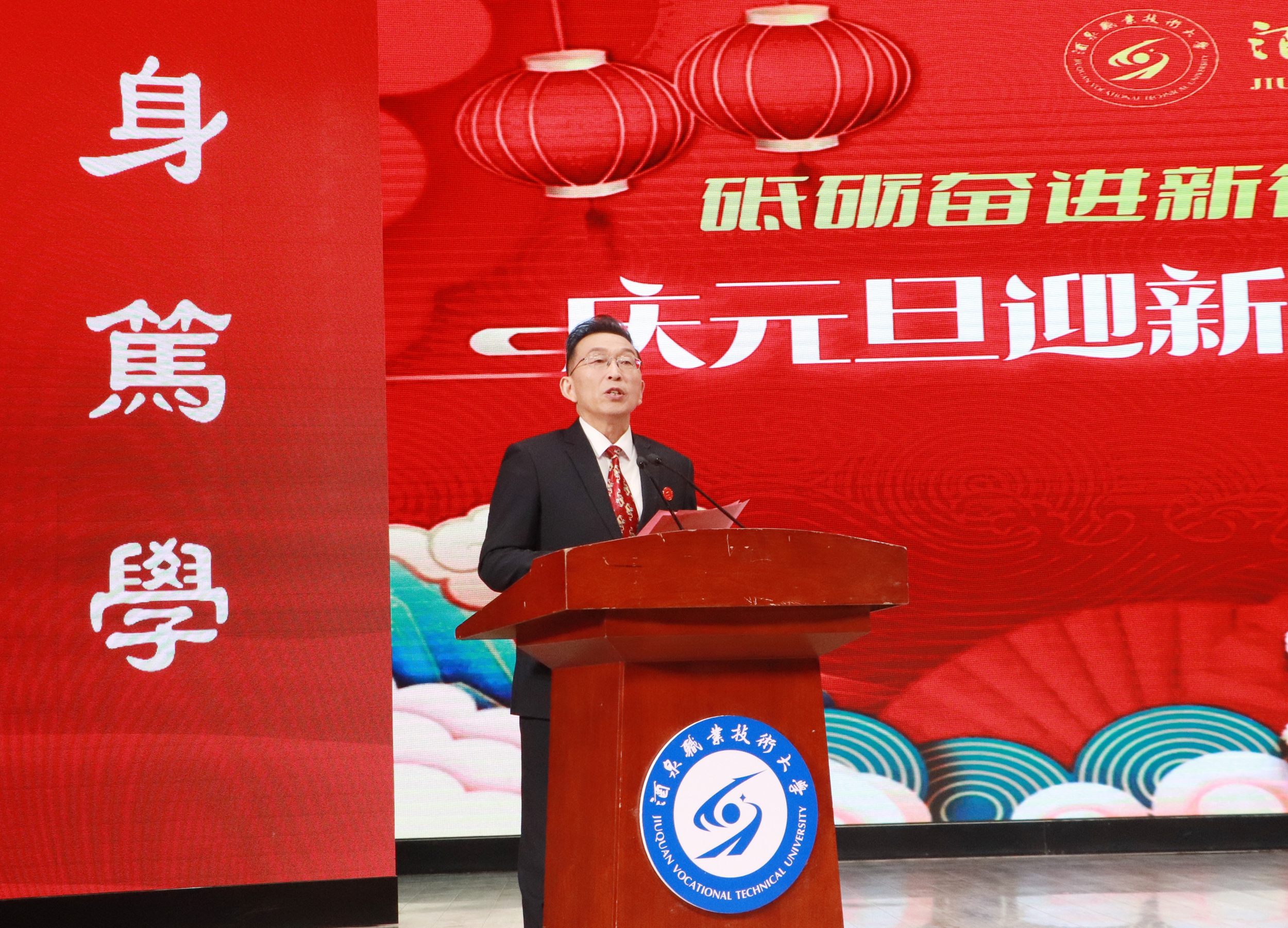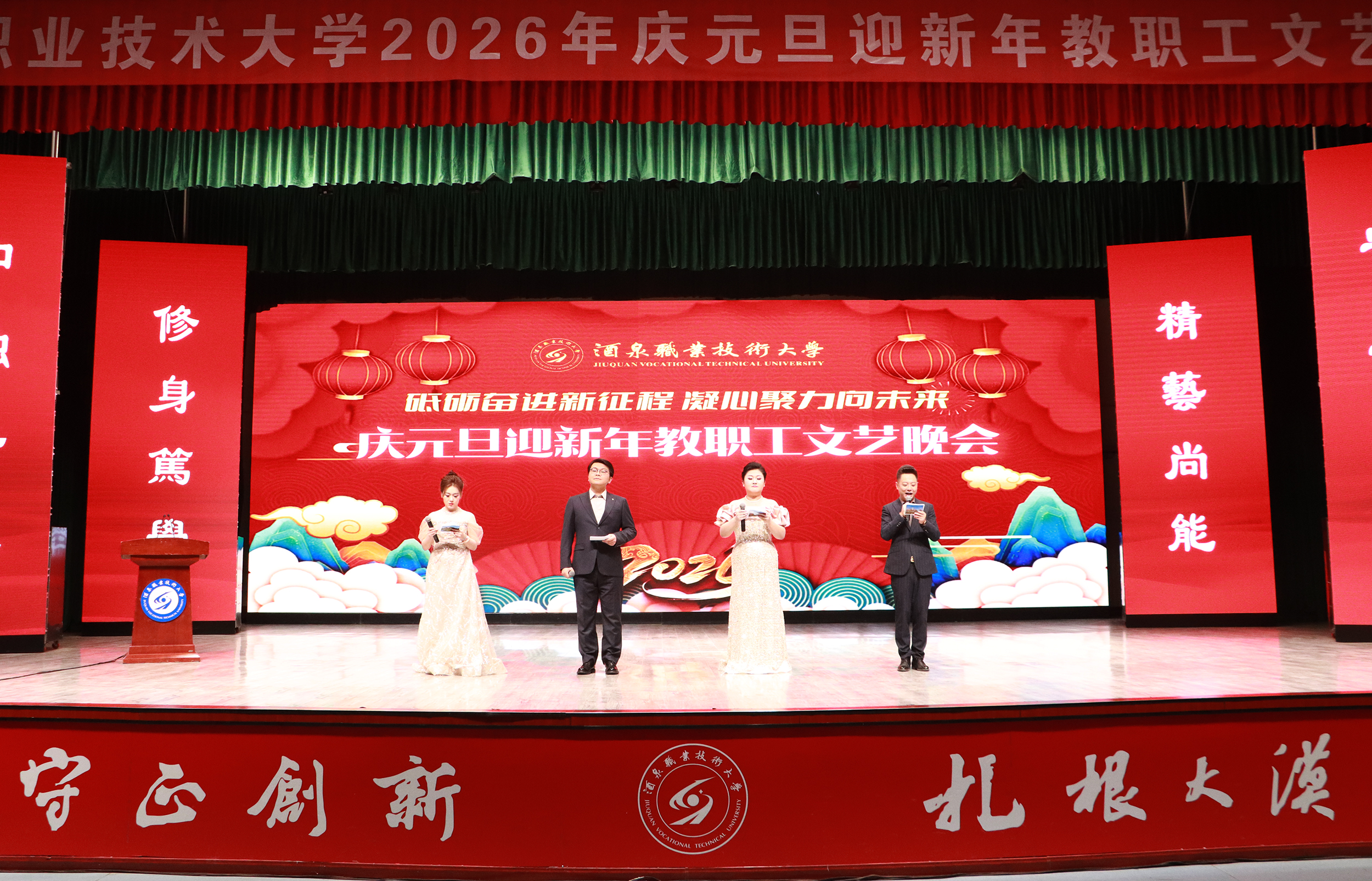 要闻快递 > 正文辞旧迎新启华章,凝心聚力谱新篇。2025年12月30日晚,学校举办“砥砺奋进新征程 凝心聚力向未来”庆元旦迎新年教职工文艺晚会。学校党委班子成员、全体教职工和酒泉卫生学校、酒泉工贸中等专业学校教师欢聚一堂,用精彩的表演回望过往耕耘,展望未来征程。