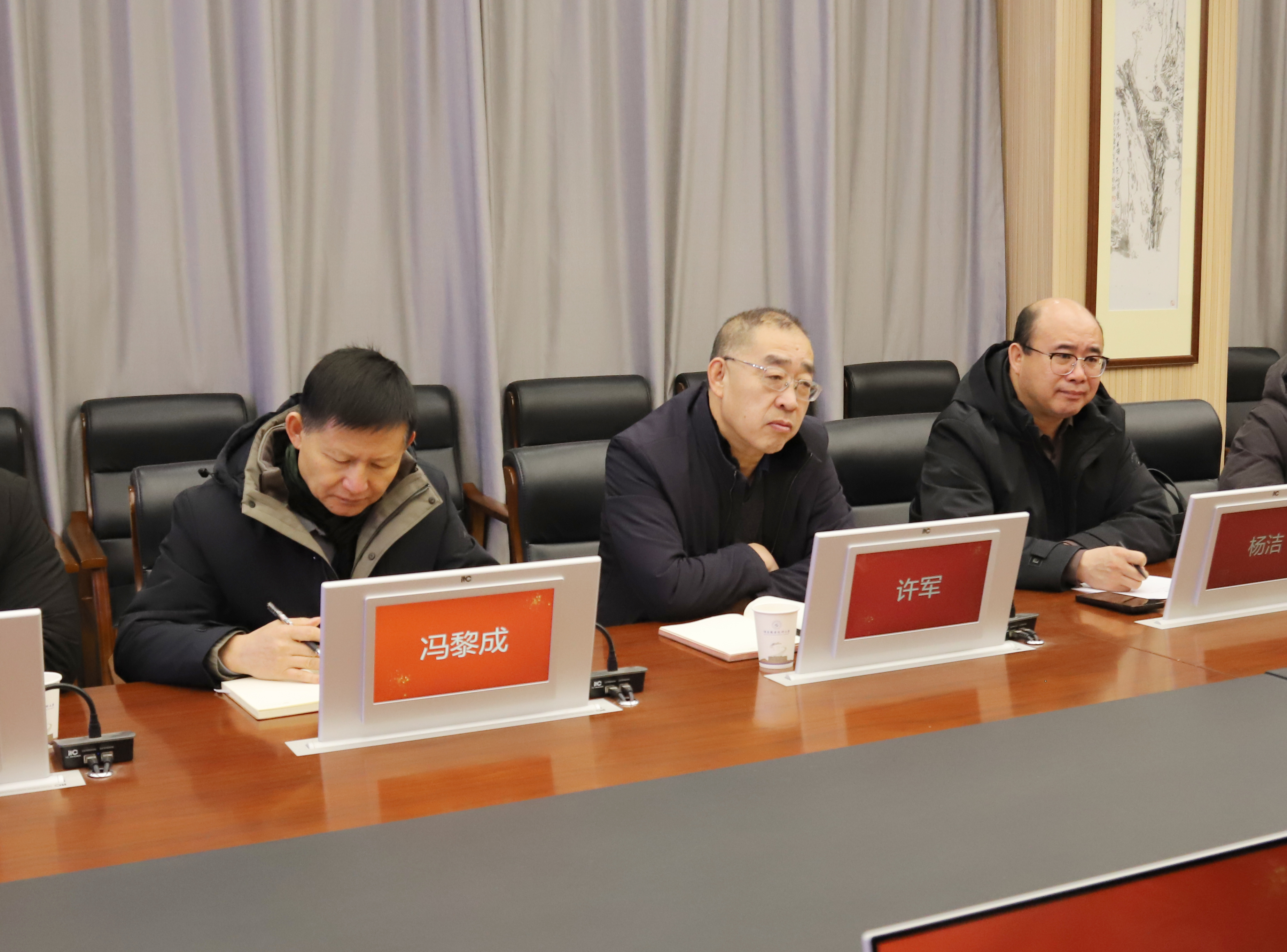 2026年1月19日,宁夏中科嘉业新能源研究院董事长李立一行来我校就新能源领域校企合作事宜进行座谈交流。学校党委副书记、校长许军,党委委员、副校长杨洁出席座谈会。办公室、科研处、培训处、新能源研究院和新能源工程学院相关负责人参加座谈交流。