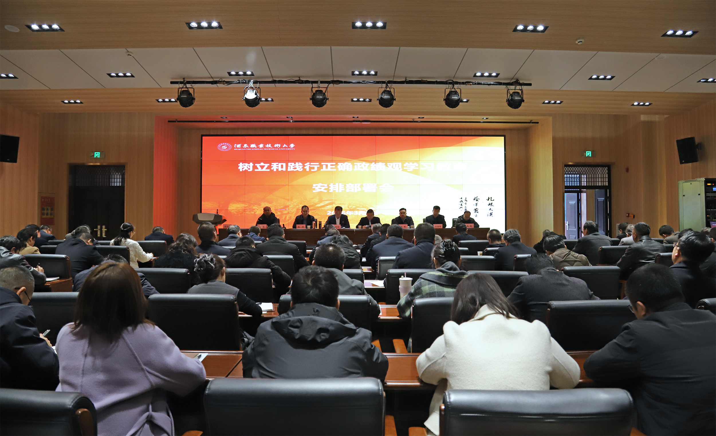 2026年3月2日,学校召开树立和践行正确政绩观学习教育安排部署会议,深入学习贯彻习近平总书记关于树立和践行正确政绩观的重要论述,以“立党为公、为民造福、科学决策、真抓实干”为总要求,以一体推进学查改为抓手,教育引导党员干部坚持实事求是、求真务实,为人民出政绩、以实干出政绩,着力推动学校高质量发展。党委书记易志军主持会议并讲话。学校党委班子成员,中层干部和党员代表参加会议。