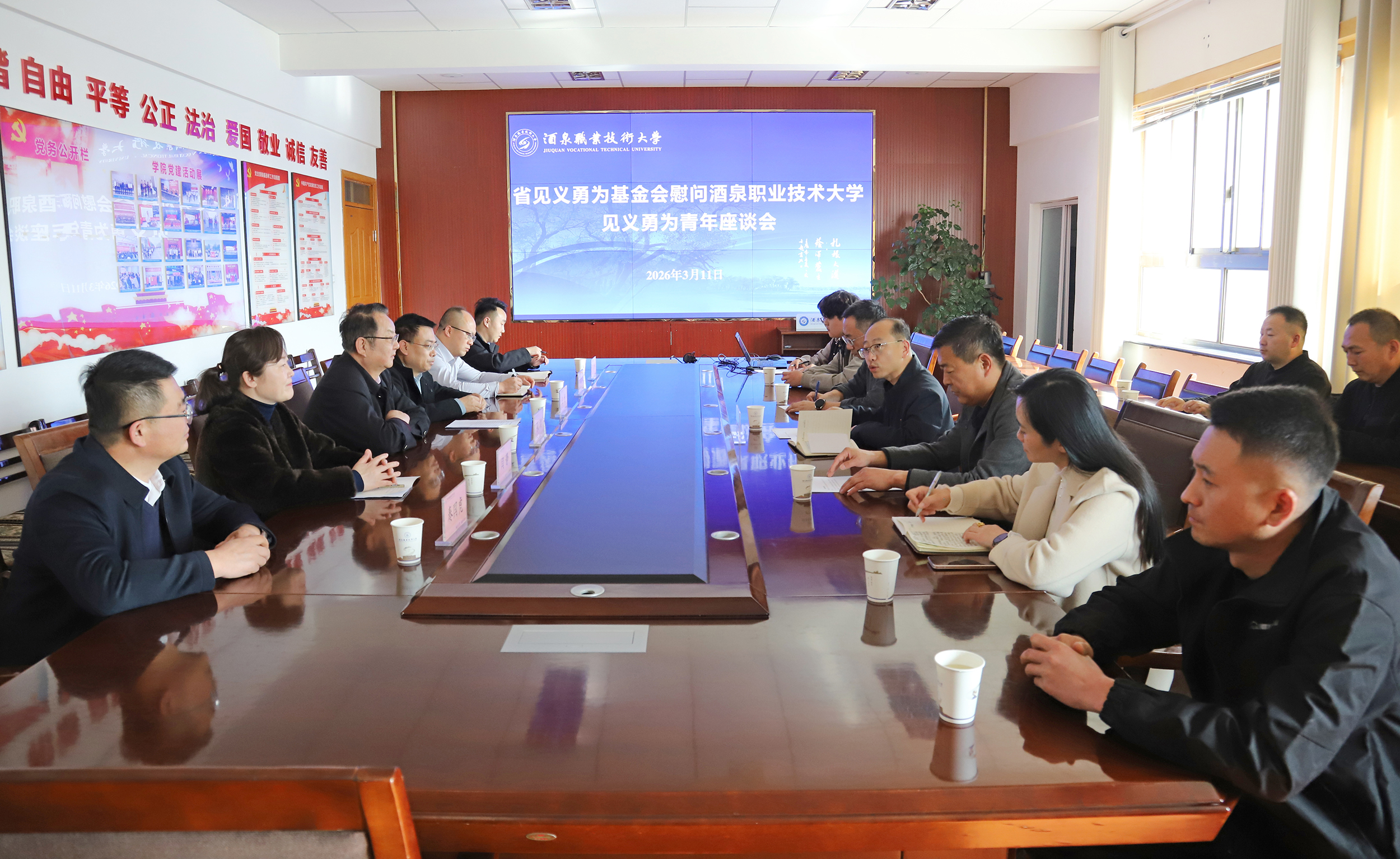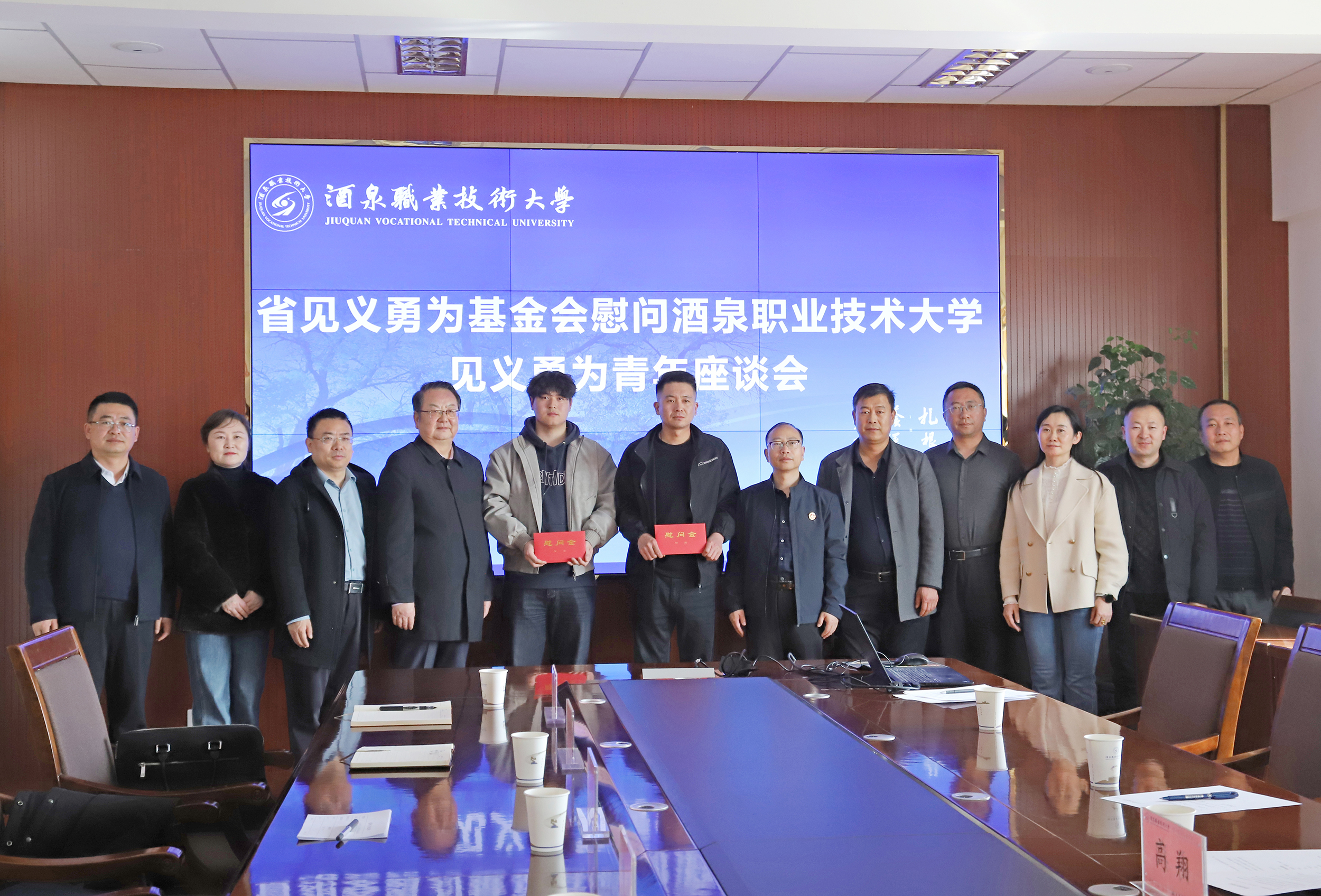 要闻快递 > 正文2026年3月11日,甘肃省见义勇为基金会常务副理事长张翔一行来到学校,慰问我校见义勇为学生徐彬和肃州区青年赵江儒。市见义勇为协会、肃州区委政法委及综治中心相关负责人陪同慰问。学校党委委员、副校长高翔主持慰问活动。学生工作部、新能源工程学院负责人及教师代表参加座谈。