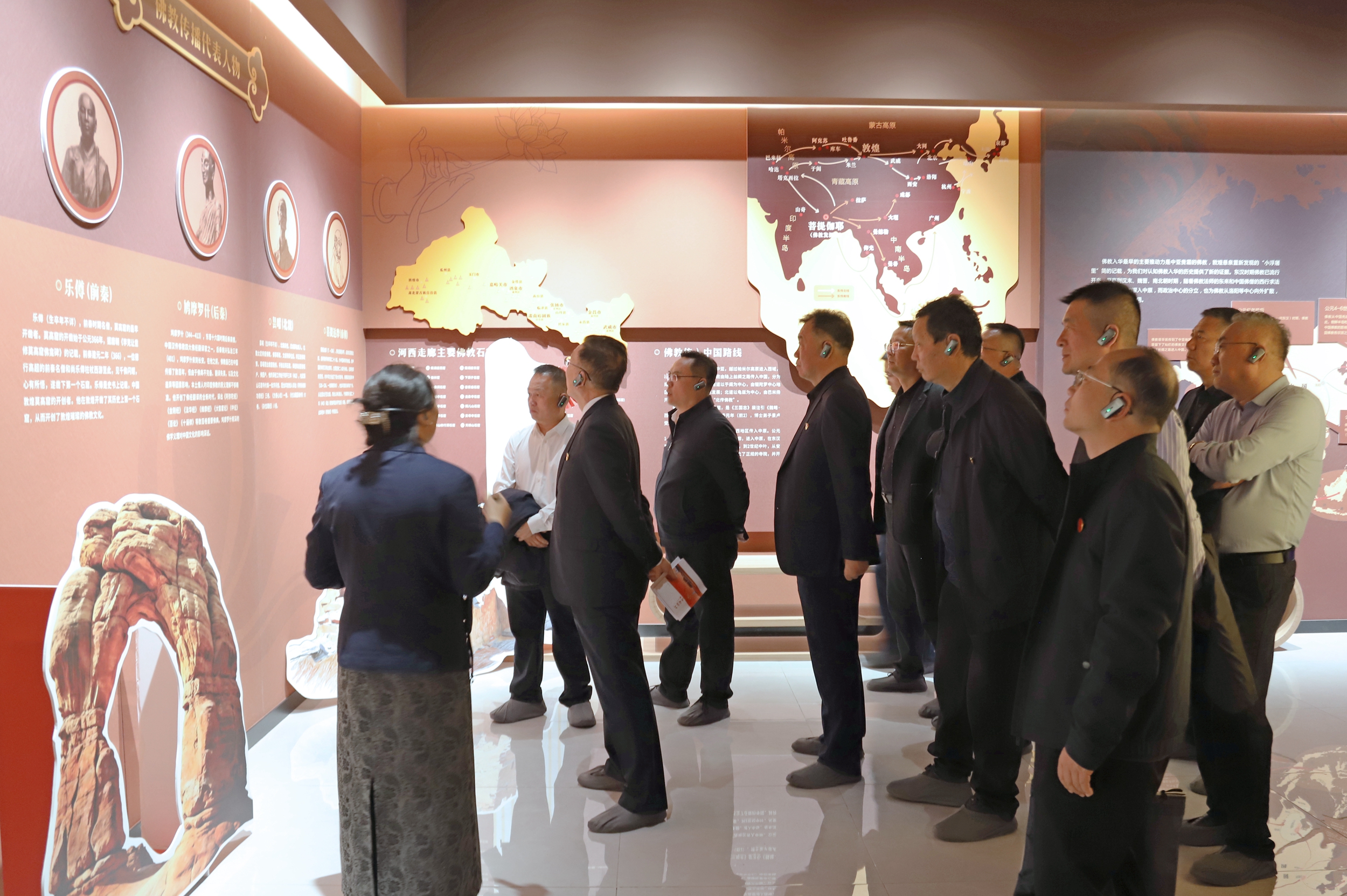 活动中,成员们依次参观了各主题展厅和功能区域。大家认真聆听讲解,仔细驻足观看,从汉简文物、边塞诗词到敦煌海外流散文物相关展示,从河西儒学传承到民族文化交融,从传统非遗技艺到数字化文化呈现,全方位了解了丝绸之路的历史脉络、文化内涵和时代价值,深刻感悟到中华优秀传统文化的博大精深和酒泉作为丝路重镇的深厚文化底蕴。