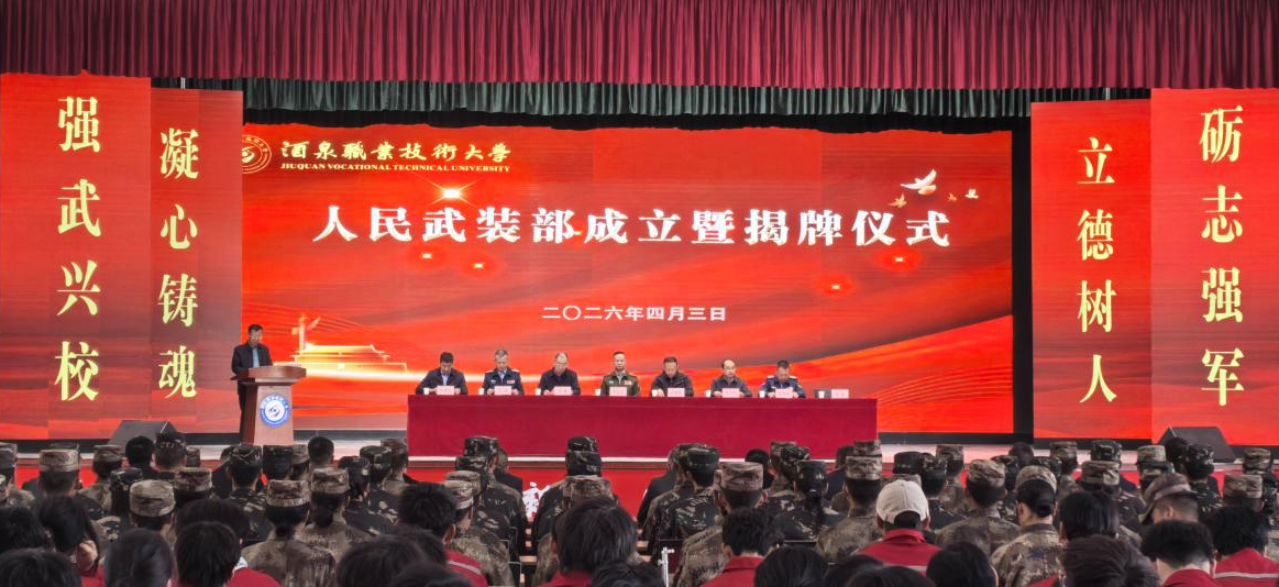 要闻快递 > 正文2026年4月3日上午,学校举行人民武装部成立暨揭牌仪式。酒泉军分区大校政治委员李昌政,酒泉市副市长、市公安局局长王锴奕,酒泉职业技术大学党委副书记、校长许军,酒泉市政府副秘书长武兴刚,酒泉军分区动员处上校处长孙明,肃州区委常委、区人武部上校政治委员程景峰,肃州区副区长、区公安局局长张建武,肃州区人武部中校副部长马慧等党政军领导出席仪式。市、区兵役机关工作人员,学校各职能部门负责人、各学院相关负责人及学生代表参加仪式。仪式由学校党委委员、副校长王金明主持。