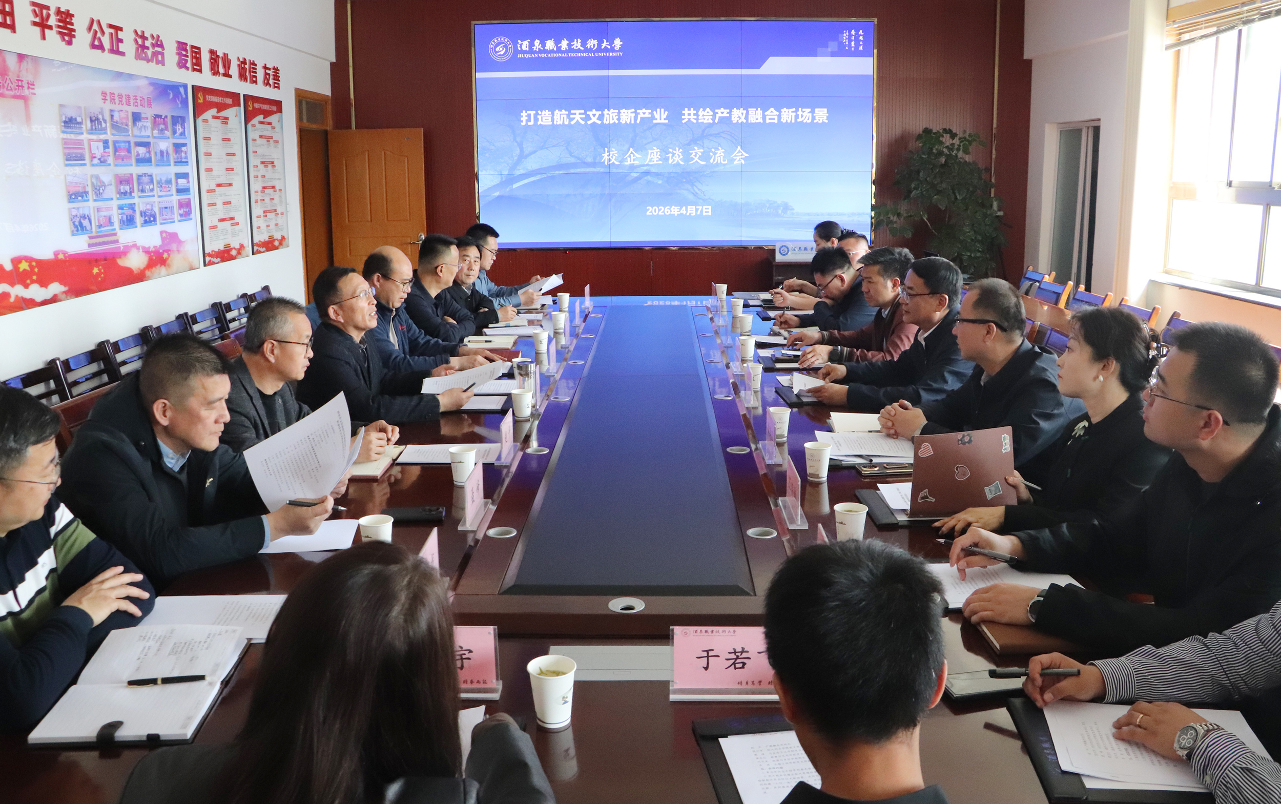 2026年4月7日,酒泉市文化旅游发展集团有限公司党委书记、董事长李进忠带队来我校开展以“打造航天文旅新产业 共绘产教融合新场景”为主题的校企座谈交流会。学校党委书记易志军主持会议并介绍学校基本情况,双方相关负责人参加交流座谈。